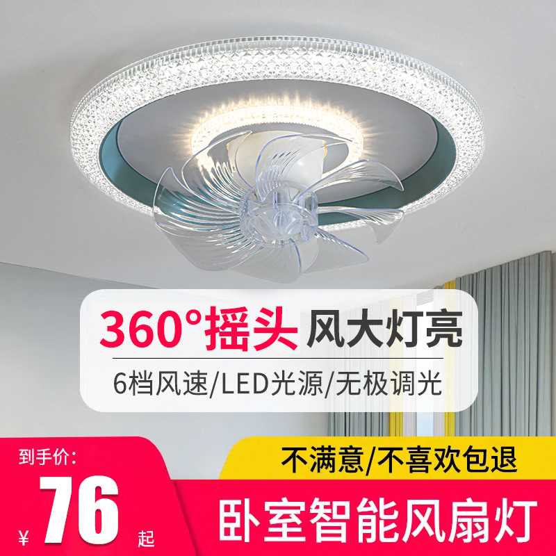 Lampu kipas kamar tidur kepala bergoyang, kipas listrik pintar rumah untuk ruang tamu, Kamar makan, langit-langit 360 derajat
