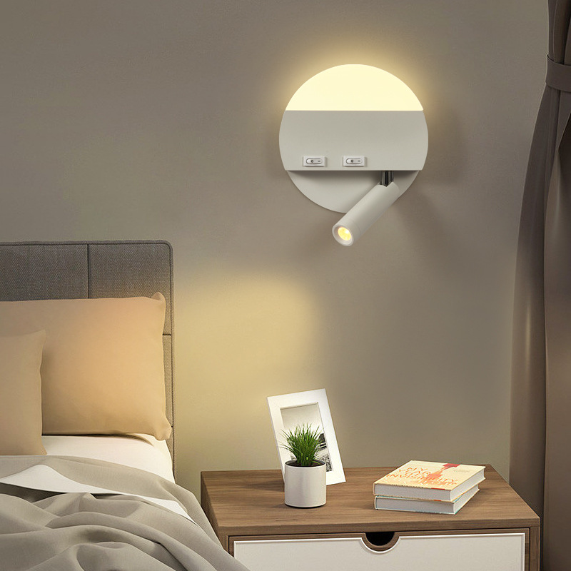 Lampu LED bulat Modern sederhana, lampu belajar kamar tidur samping tempat tidur membaca lampu dinding koridor kreatif latar belakang