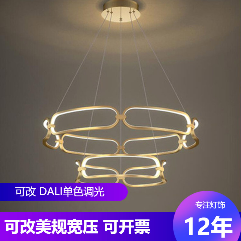 led restoran lampu gantung skandinavia modern minimalis lampu gantung kamar tidur ruang tamu lampu tiga cincin Zhongshan pencahayaan pabrik penjualan langsung