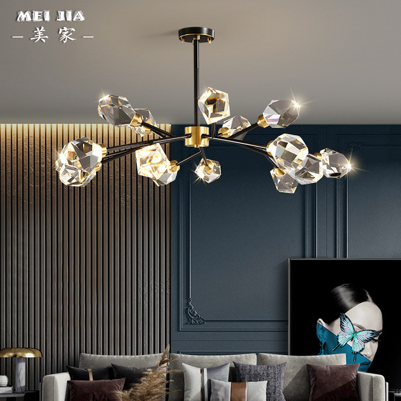 Lampu gantung kristal ruang tamu, lampu semua tembaga mewah sikat hitam emas modern minimalis ruang makan kamar tidur suasana Nordik kelas atas