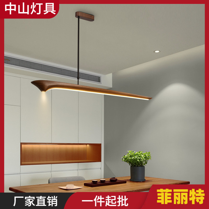 Lampu Gantung Bar Restoran Kayu Solid Modern Sederhana Nordic Meja Depan Desainer Lampu Kreatif LED Panjang Kantor