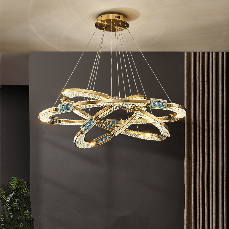 Lampu gantung kristal, lampu modern mewah rangkap bangunan Villa restoran cincin desainer sederhana kamar tidur seni tempat lilin