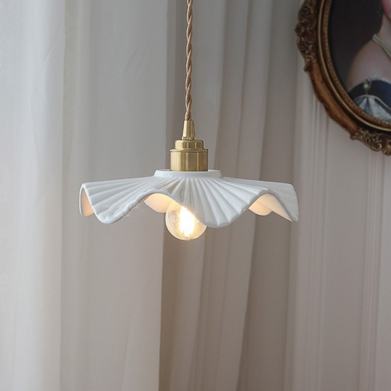Rok Lipit Keramik Nordik Lampu Gantung Kecil Elegan Kepala Ranjang Kamar Tidur Bar Kafe Restoran B & B Hati Gadis Warna Putih