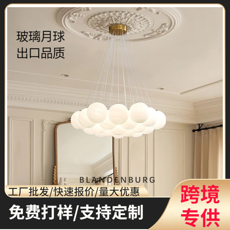 Lampu Ruang Tamu Gaya Krim Modern Nordik Bola Gelembung Kreatif Lampu Gantung Bulan Kaca Dekorasi Rumah Kamar Tidur Kamar Tidur Anak Perempuan