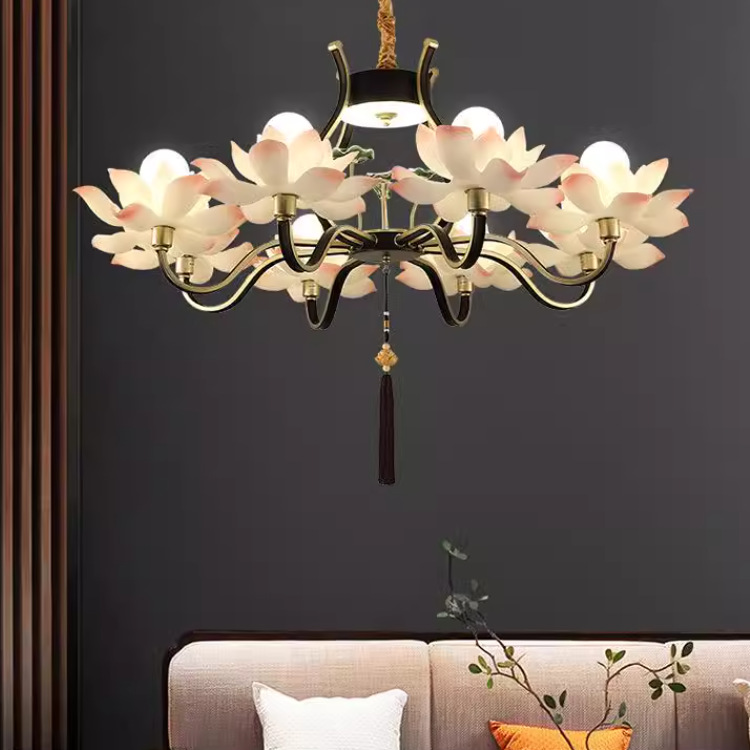 Lampu Lotus baru lampu ruang tamu Cina lampu antik restoran Cina Zen ruang teh lampu teratai aula kuil Buddha lampu
