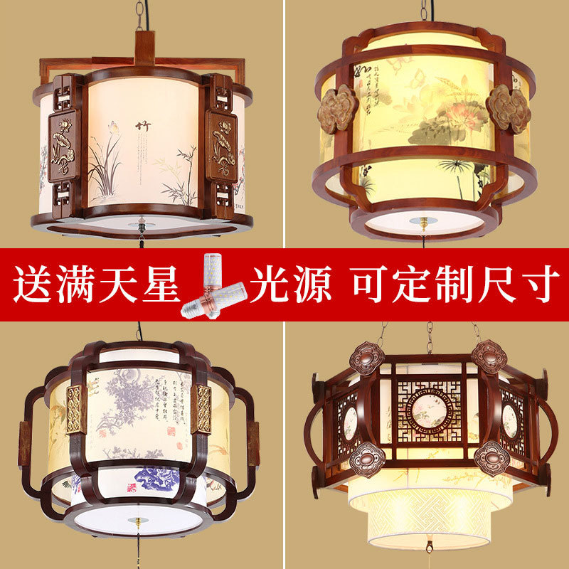 Lampu led gaya China, lampu gantung kulit domba kayu padat restoran lampu antik hotel rumah teh balkon Vila kamar tidur lampu led gaya China