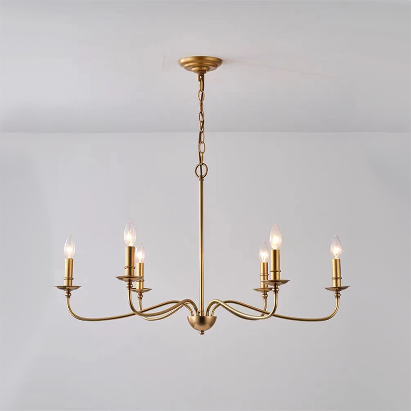 Lampu gantung bergaya Amerika dari tembaga, lampu kosong bergaya retro ruang tamu kamar tidur B & B dupleks tembaga murni minimalis modern kuno