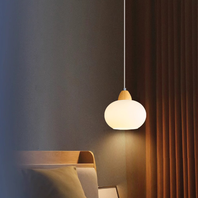 Lampu Gantung Kaca Gaya Krim Kayu Asli Kepala Tempat Tidur Kamar Tidur Garis Gantung Pintu Masuk Restoran Seni Seleban Gaya Modern Sederhana