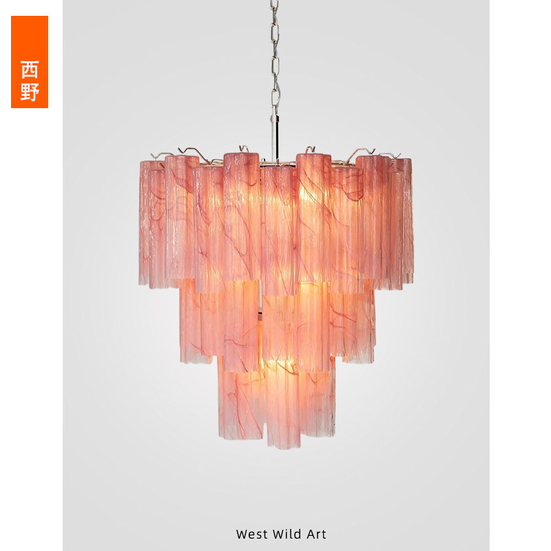 Lampu Gantung Murano Murano Gaya Perancis Lampu Gantung Kaca Tabung Plum Merah Muda Kamar Tidur Ruang Makan Ruang Tamu Model Desain Gaya Pertengahan