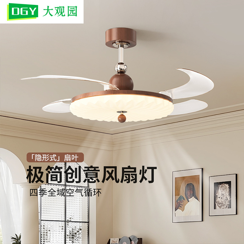 Lampu Kipas Angin Warna Kayu Kenari Model Perancis Lampu Gantung Kreatif Pelindung Mata Retro Modis Benang Kamar Tidur Restoran 412L