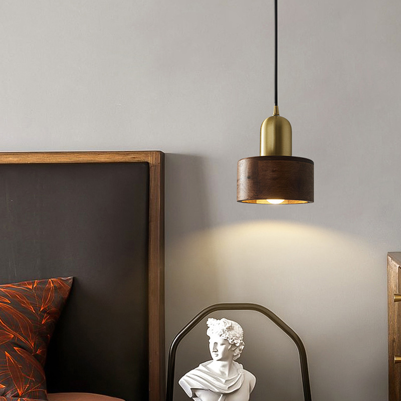Lampu Gantung Kamar Tidur Tembaga Penuh Gaya Jiji Lampu Ruang Makan Kuningan Kayu Kenari Hitam Retro Retro Lampu Gantung Panjang Panjang Meja Bar