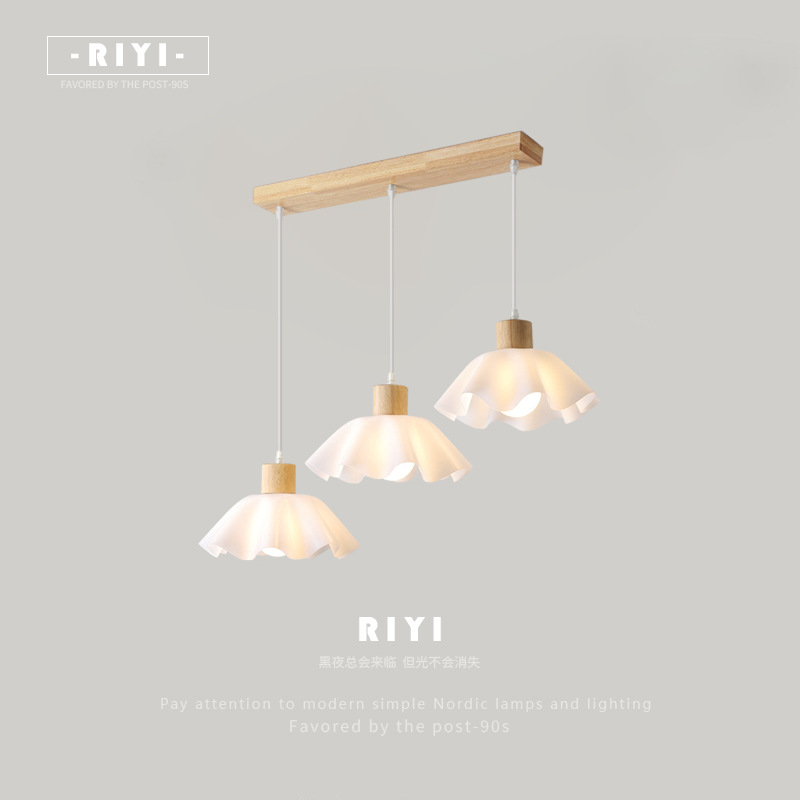 Lampu ruang makan, bahan kayu Nordic tiga kepala lampu meja makan bar sederhana modern gaya Jepang gaya diam kamar tidur lampu samping tempat tidur kecil
