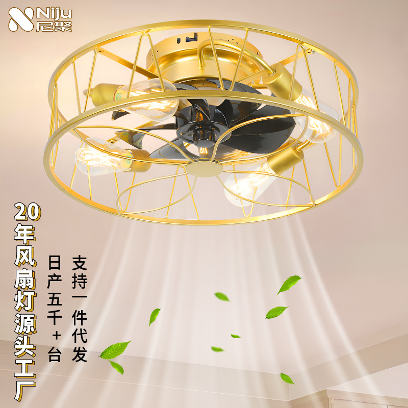 Lampu Kipas otomatis restoran, lampu gantung kamar tidur minimalis modern dengan konversi frekuensi kipas listrik langit-langit tidak terlihat pabrik Zhongshan