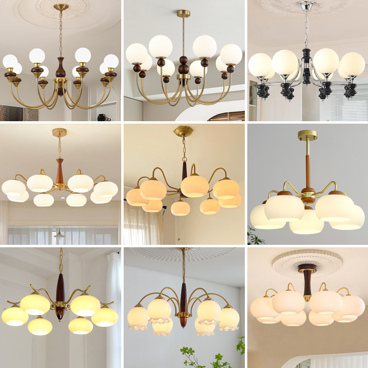 Lampu Zhongshan Grosir Lampu Ruang Tamu Model Perancis Lampu Gantung Retro Lampu Utama Kamar Tidur Lampu Ruang Makan Gaya Krim Kacang Ajaib