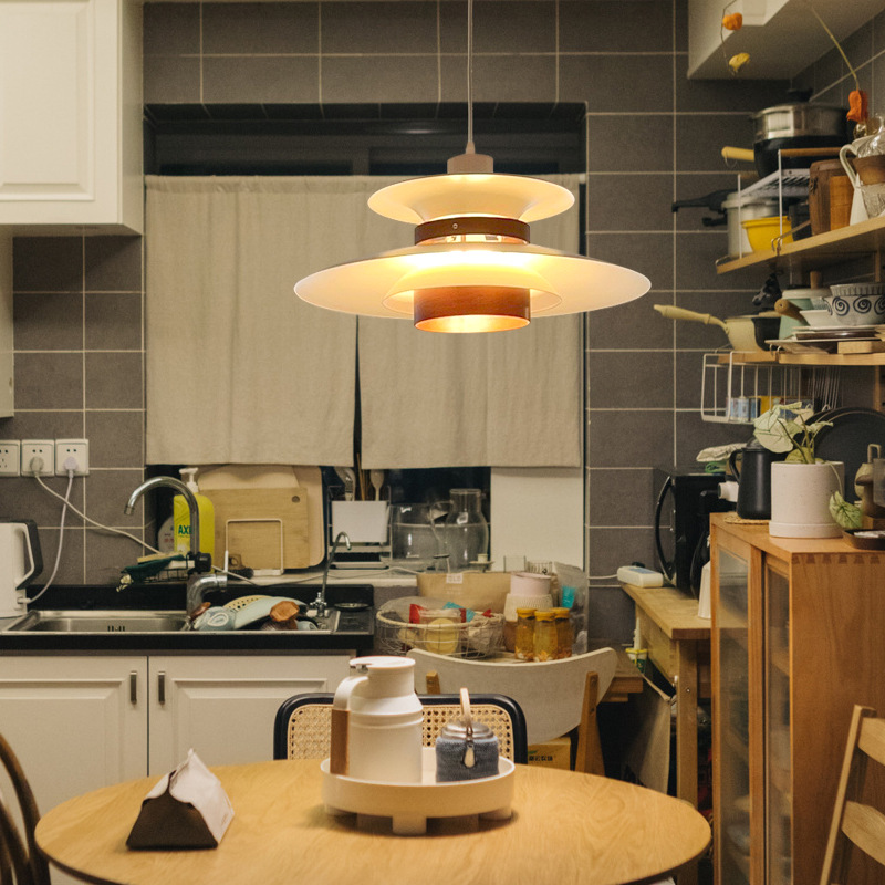 Lampu Gantung Restoran Disc Gaya Pertengahan Lampu Meja Makan Rumah Tangga Retro Warna Walnut Air Tiga Kepala Casa