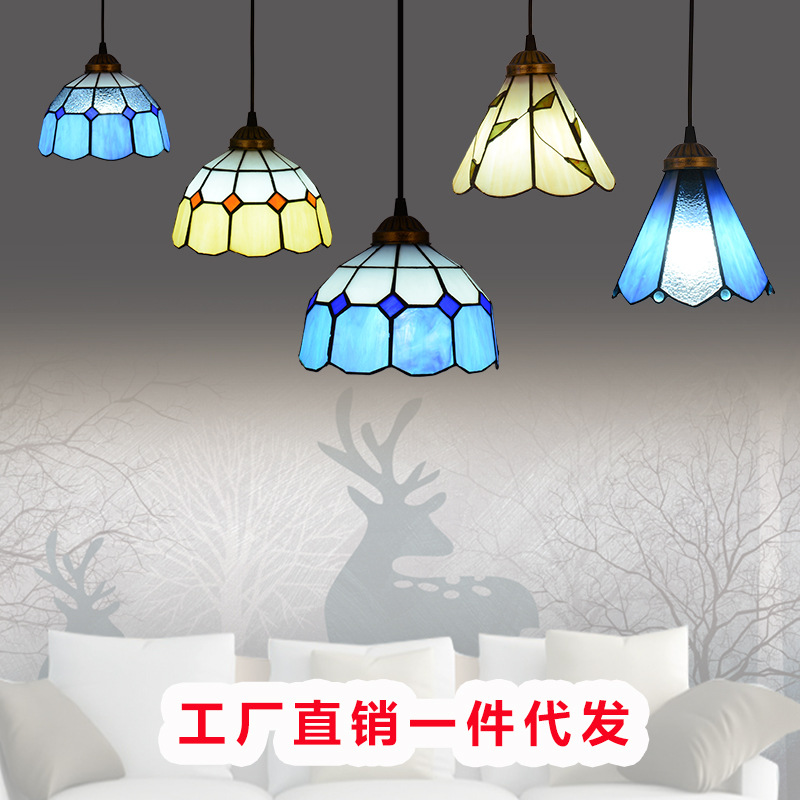 Lampu Gantung Kecil Tempat Tidur Kamar Tidur Minimalis Modern Lampu Gantung Kaca Buatan Tangan Kotak-Kotak Biru Lampu Gantung Kafe Hotel