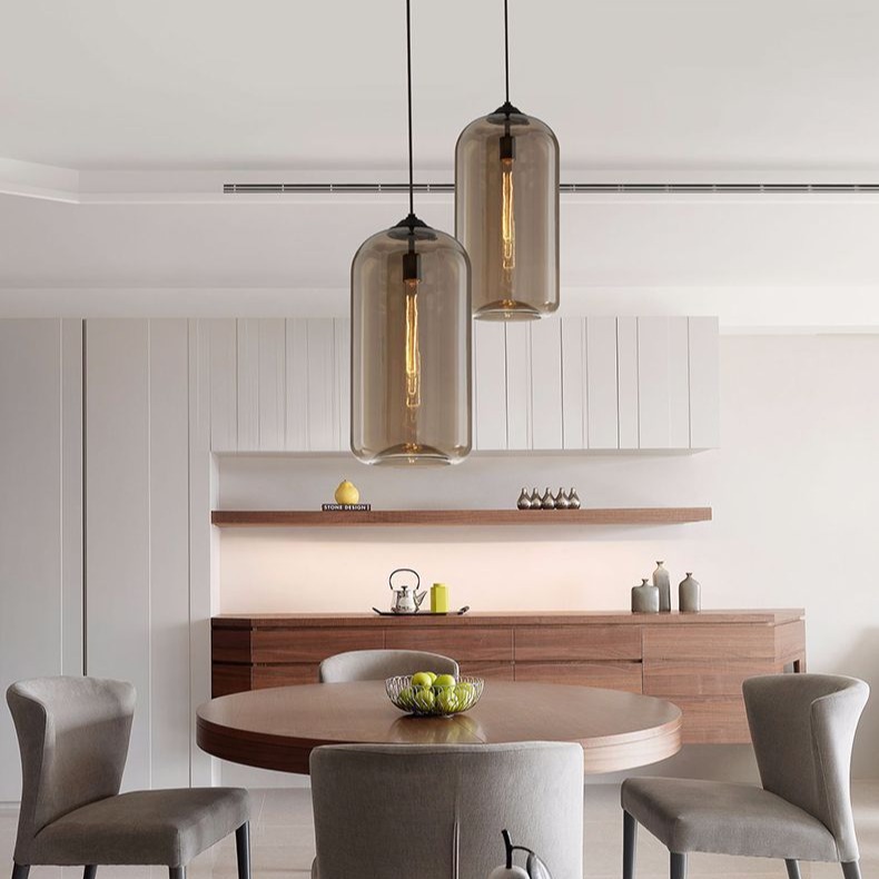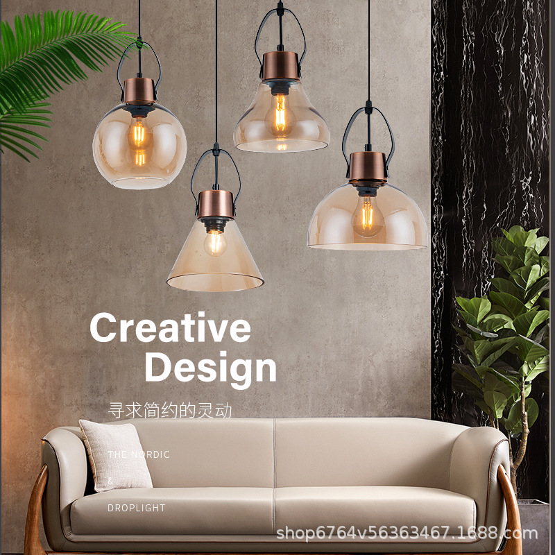 Lampu gantung meja bar, bergaya retro Amerika pribadi kreatif Nordik sederhana kaca transparan tunggal kepala lampu gantung samping tempat tidur