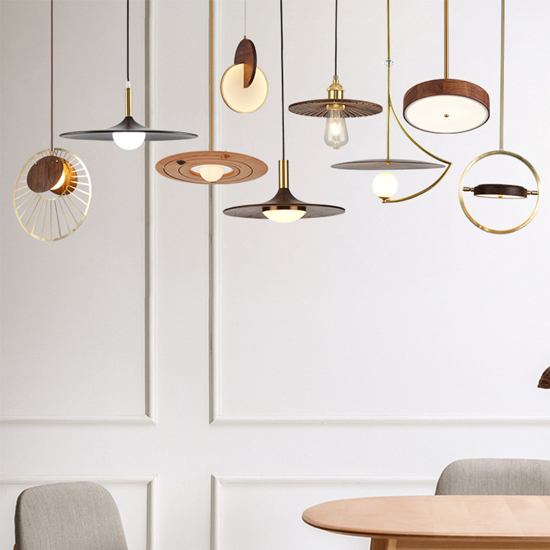 Lampu gantung kayu polos sederhana, tempat tidur samping tempat tidur kecil minimalis belajar hitam walnut kecil ruang makan kepala tunggal
