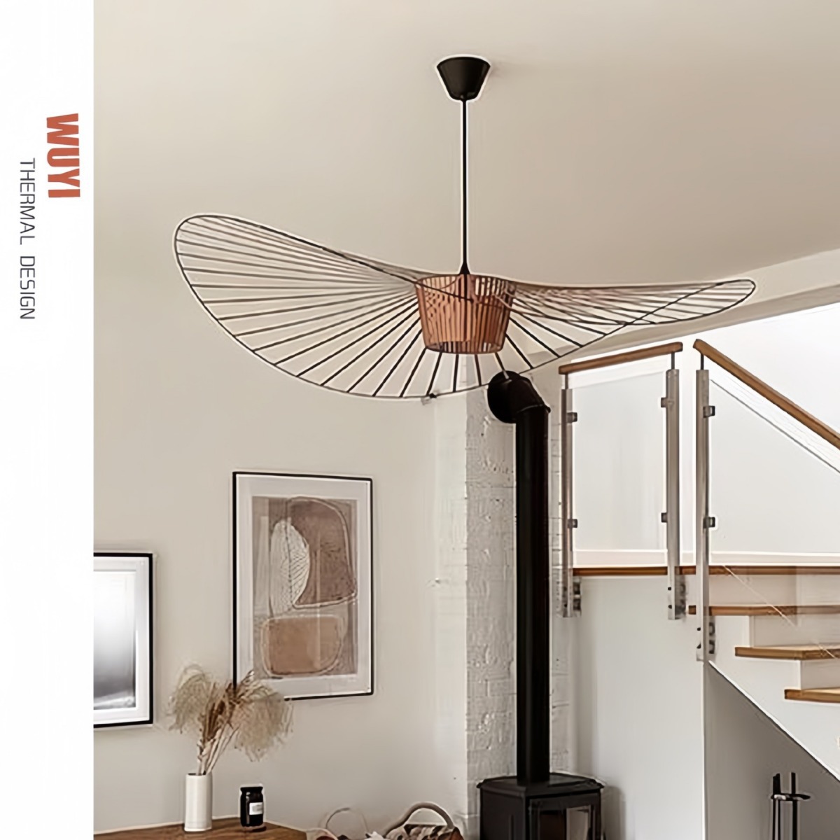 Lampu Gantung Ruang Tamu Gaya Pertengahan Lampu Topi Jerami Prancis Tenun Buatan Seni Kreatif Vertigo Lampu Kamar Desainer