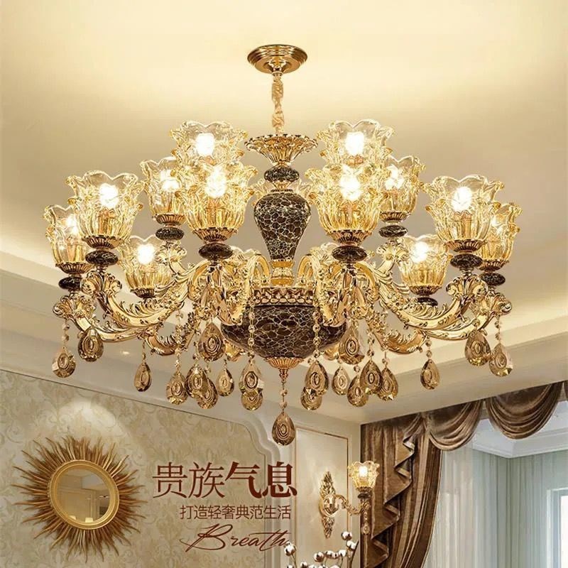 Lampu Gantung Gaya Eropa Lampu Ruang Tamu Mewah Dekorasi Lampu Kristal Paduan Seng Gaya Prancis Mewah Ringan Kamar Tidur Keramik