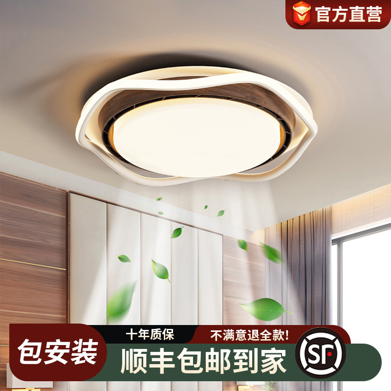 静音一体电扇灯无叶风扇灯现代简约卧室书房灯吸顶灯中古创意隐形