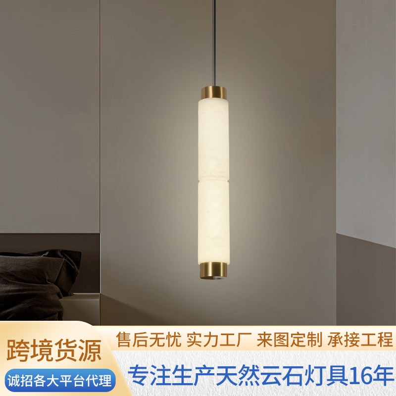 Lampu gantung marmer tembaga, lampu gantung kecil kepala tunggal, lampu samping tempat tidur kamar tidur giok Cina baru, lorong, restoran, lampu gantung ruang teh