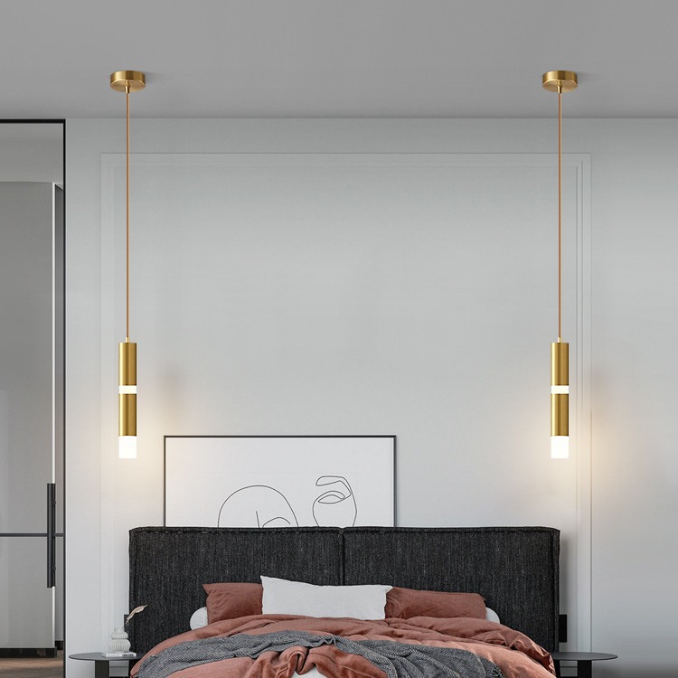 Lampu gantung samping tempat tidur, lampu gantung Internet minimalis kecil latar belakang TV garis panjang mewah untuk kamar tidur