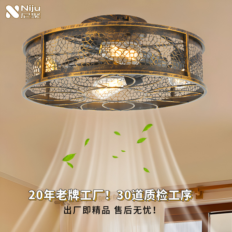 Lampu Kipas Gaya Superior Retro Lampu Kipas Gantung Lampu Kipas Listrik Langit-langit Ruang Makan Kamar Tidur Ruang Tamu Rumah Tangga Terpadu Tak Terlihat Lampu Gantung