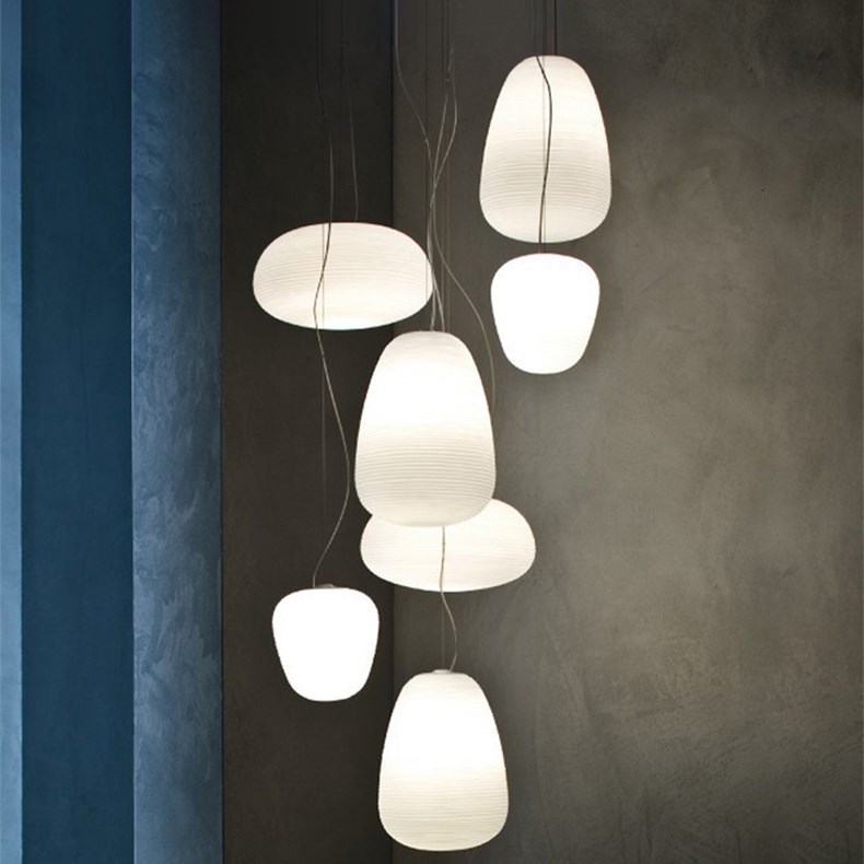 Lampu gantung restoran kaca putih gaya Jepang, lampu dekorasi meja bar toko kopi gaya Jepang modern sederhana
