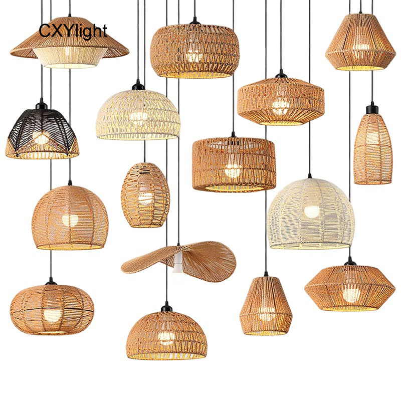 Lampu Gantung Tali Kertas Model Pertengahan Khusus Lintas Batas Lampu Gantung Tali Linen Retro Lampu Topi Jerami Lintas Batas Gaya Jepang Kamar Teh Zen