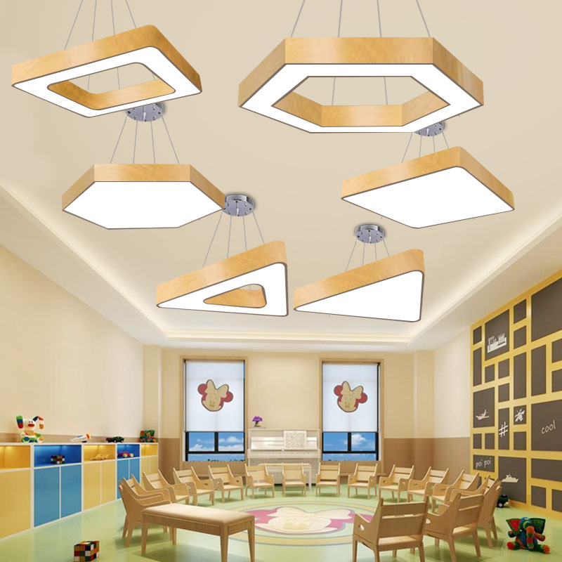 Lampu gantung bentuk Y, lampu gantung ruang kelas yoga dansa gym taman kanak-kanak, lampu awan kreatif bentuk Y bahan kayu led