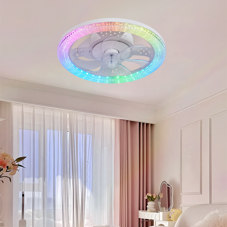 Lampu Kipas Angin Lintas Batas RGB Lampu Langit-langit Kamar Tidur Lampu Kipas Gantung Ruang Tamu Kipas Angin Listrik Cerdas Minimalis Modern Graffiti