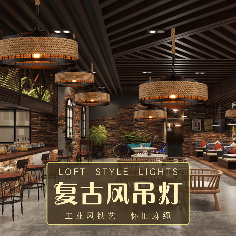 Lampu gantung tali rami gaya industri retro, lampu toko pakaian jaring kafe bar restoran kreatif negara Amerika