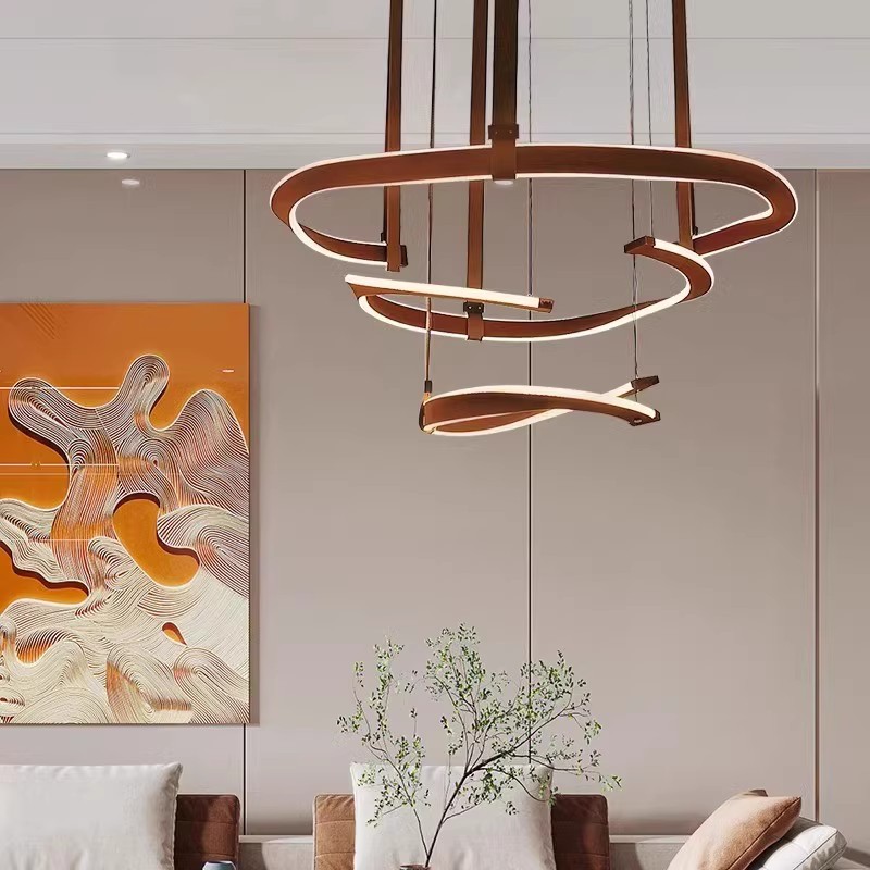 Lampu gantung ruang tamu minimalis Italia lampu utama aula cincin kulit ruang makan tinggi atmosfer Villa desainer modern
