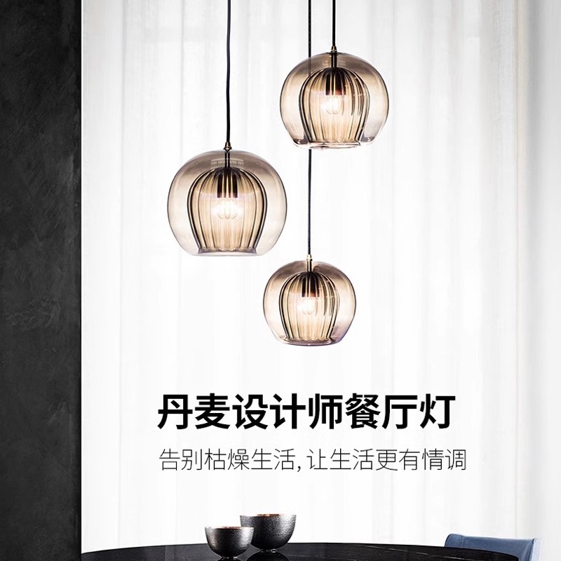 Lampu gantung, kepribadian kreatif cahaya mewah ruang makan kaca kristal lampu meja makan rumah ruang makan tiga kepala modern sederhana bar lampu