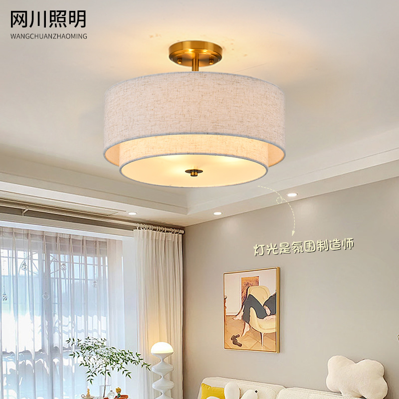 Lampu gantung kain Nordic, lampu ruang tamu kamar tidur gaya krim Hotel B & B lampu gantung restoran kreatif sederhana