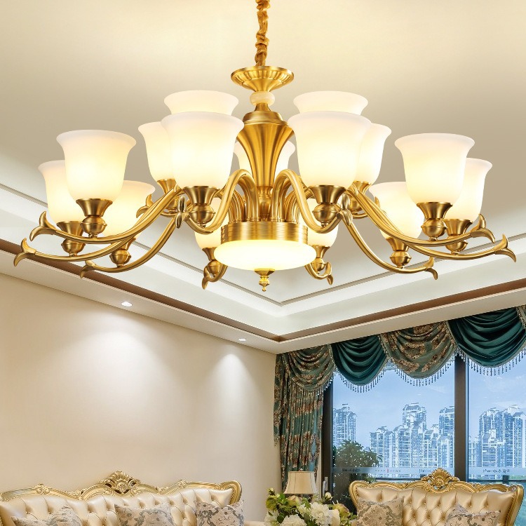 Lampu gantung gaya Amerika, lampu ruang tamu tembaga modern sederhana mewah suasana ruang makan kamar tidur gaya Eropa