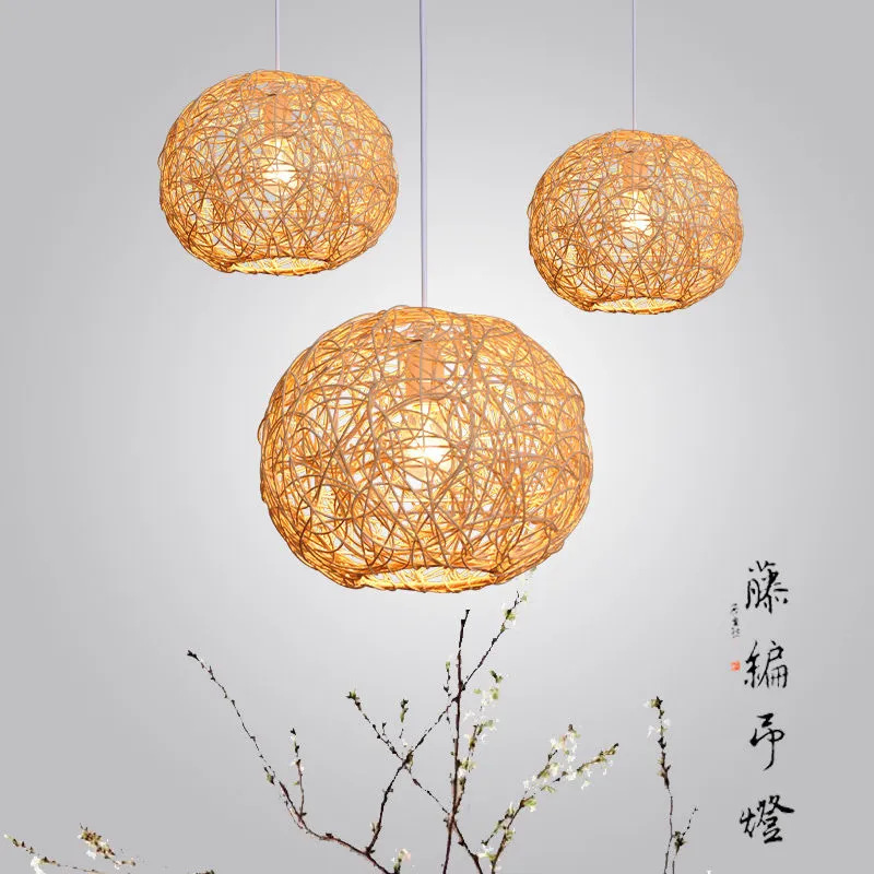 Lampu gantung bola rotan Restoran pastoral Modern sederhana lampu anyaman buatan tangan kreatif lampu bola Toko makan ruang tamu kamar tidur