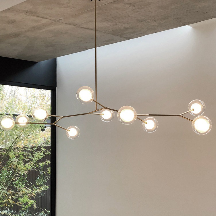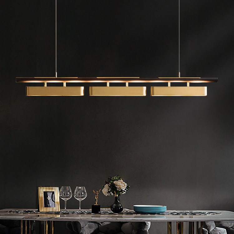 Lampu gantung panjang Restoran Tiongkok, lampu ruang makan led, lampu gantung ruang teh minimalis modern bar meja makan tembaga mewah