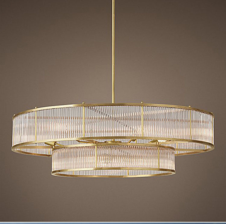 Lampu gantung kristal retro Amerika Kreatif Sederhana Nordik bulat ruang tamu ruang makan villa hotel lampu lapisan ganda panjang