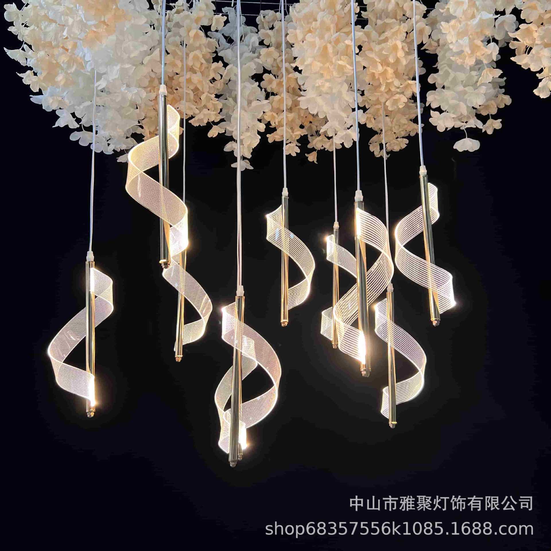 婚庆道具亚克力发光扭花小吊灯现代轻奢酒店婚礼堂吊顶发光装饰灯