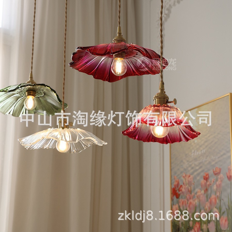 Tempat lilin selebriti Internet gaya Jepang ruang makan ruang tamu bar samping tempat tidur Nordik modern kuningan bunga matahari lampu gantung kaca