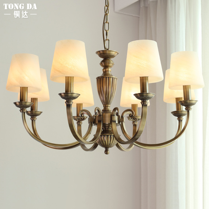 Lampu gantung ruang tamu, lampu gantung ruang makan elegan sederhana dengan perunggu bergaya Amerika Villa retro