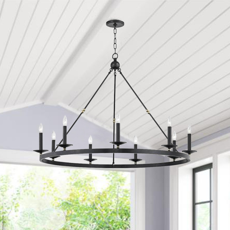 Lampu gantung negara Amerika restoran Rumah Tangga dupleks bangunan kamar tidur gaya industri desain lilin hitam bulat lampu ruang tamu
