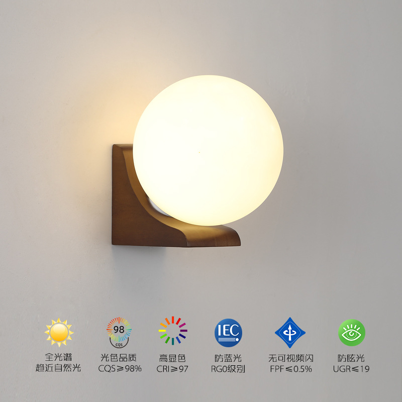 2024 Lampu Dinding Bola Kayu Solid Warna Kenari Hitam Minimalis Model Hotel Ruang Tamu Dinding Latar Belakang Kamar Tidur Lampu Kayu Kepala Tempat Tidur