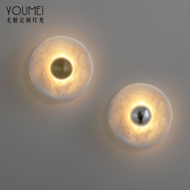 北欧后现代天然雪花云石壁灯过道走廊卧室床头电视充电免布线