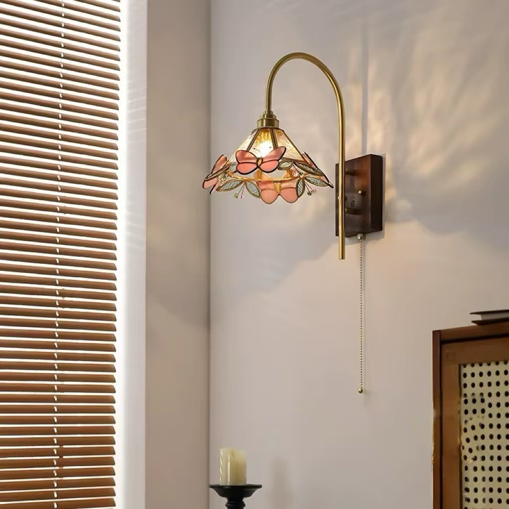 床头壁灯中古风美式蝴蝶全铜卫生间卧室客厅背景墙灯复古led灯