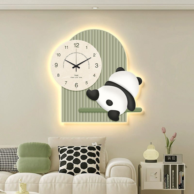 Jam Panda Kreatif Jam Dinding Ruang Tamu Rumah Populer Baru Dekorasi Restoran Lukisan Lampu Dinding Bebas Pukulan Jam Hiasan Dinding
