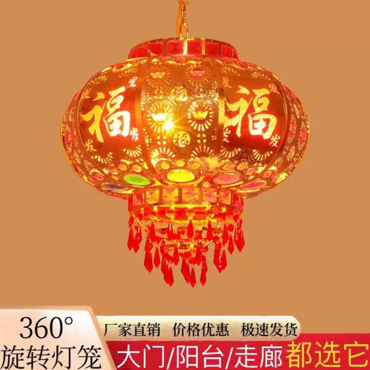 中式大红led阳台旋转灯笼吊灯过年春节结婚乔迁大门插电小灯笼挂