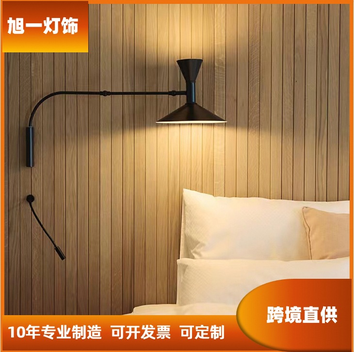 Lampu dinding samping tempat tidur Nordic, lorong kamar tidur ruang tamu dinding kreatif sederhana modern hotel membaca dekorasi berputar lampu sorot